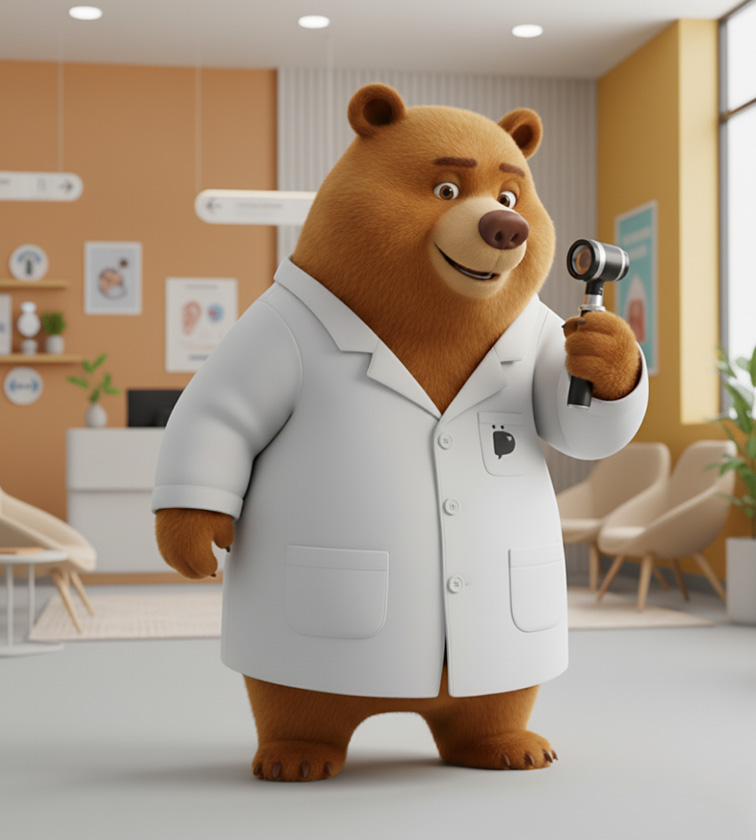 Our cheerful bear mascot was created to make hearing and speech care feel welcoming—especially for children visiting us for the first time. It reflects the approachable, supportive atmosphere we strive to create at HearBear, where every individual feels at ease from the moment they walk in.